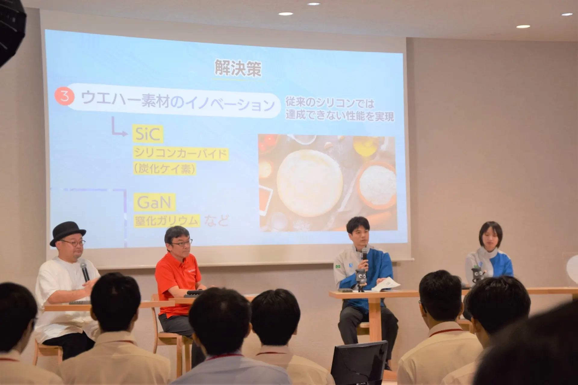 科学雑誌Newtonの板倉龍編集部長が半導体産業について解説するオンラインセミナーをDIVERSで開催しました。全国から約300人の学生が参加し、NGKの研究者とのトークセッションでは、次世代通信やパワー半導体、AI(人工知能)などの分野におけるNGKの技術力について深掘りしました。