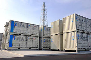 豊前蓄電池変電所に納入したNAS電池の出力は5万キロワット、容量は30万キロワット時(一般家庭約3万戸分の一日の電力使用量に相当)で、当社が新たに開発したコンテナ型NAS電池(20フィートコンテナ内に出力200キロワットのNAS電池と制御装置類を組み込んだ可搬型の蓄電池)252台で構成されています。
