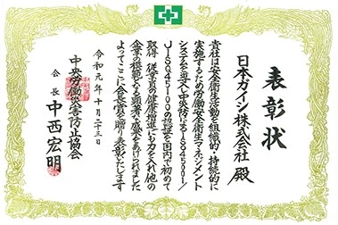 中央労働災害防止協会会長賞は、中災防の事業活動に深い理解を有し、産業安全と労働衛生の推進向上に努め、著しい成果を収めるとともに、広く地域や業界に対して普及啓発に尽くし顕著な功績が認められる企業などに贈られるものです。