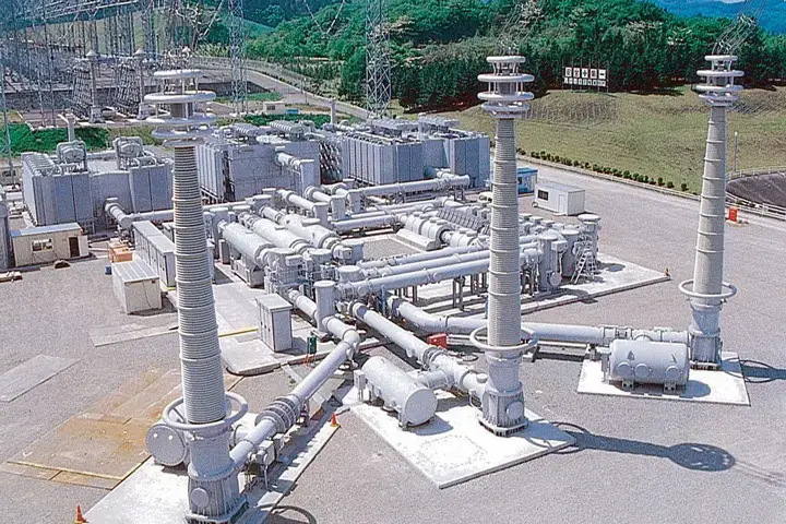 - ※1変電機器:交流電源の電圧を変換するための機器。日本では発電時には送電効率が良い超高電圧(数十万ボルト)で発電し、家庭に届けるまでの送電過程で取り扱いやすい100ボルトまで電圧を落としていく。その電圧を変換する変電所に設置される。
