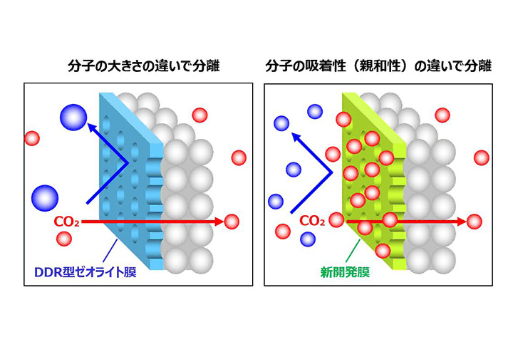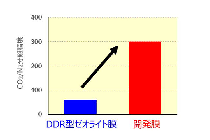 DDR型ゼオライト膜の約5倍のCO2分離精度を確認