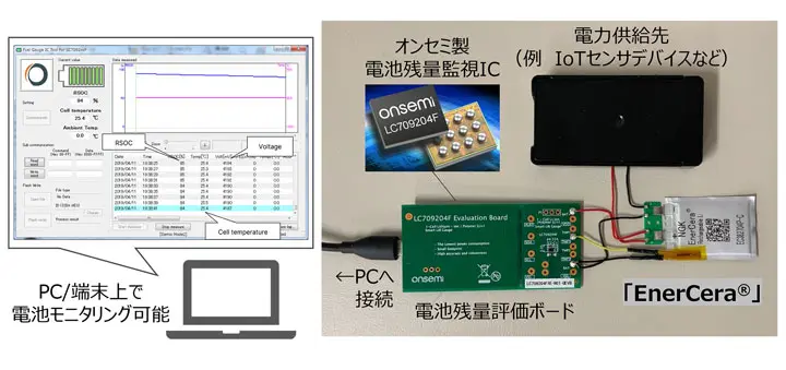 リチウムイオン二次電池「EnerCera」の電池残量を可視化する評価システムをオンセミと開発
