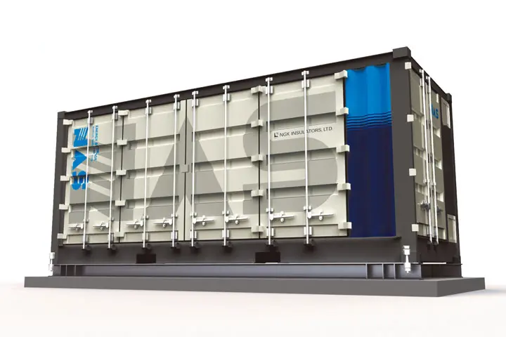 NAS電池は日本ガイシが世界で初めて実用化したメガワット級の大容量蓄電池です。大容量、高エネルギー密度(コンパクト)、長寿命を特長とし、長期にわたり高出力の電力を長時間、安定して供給することが可能です。全世界で250カ所以上、総出力72万キロワット(720メガワット)・ 総容量約500万キロワット時(約5,000メガワット時)の設置実績を持ち、電力負荷平準によるピークカットや非常電源用途のほか、再生可能エネルギーの安定化やスマートグリッドの構築など、さまざまな用途で利用されており、環境負荷の低減、カーボンニュートラルの実現に貢献しています。