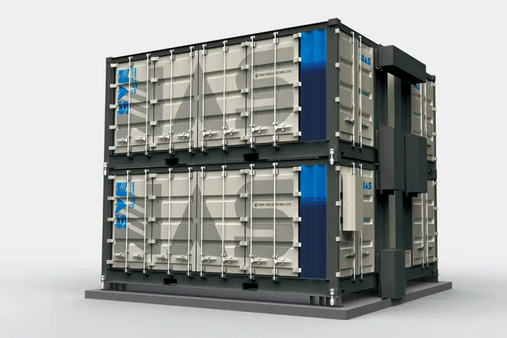 独自の最先端セラミック技術により、メガワット級の電力貯蔵を世界で初めて実用化した「NAS電池」。大容量、高エネルギー密度、長寿命を特長とし、長時間にわたる高出力供給が可能です。ピークカットや非常用電源への対策としても有用です。風力発電や太陽光発電の出力安定化やピークシフト用途での導入も増えており、再生可能エネルギーの普及やスマートグリッドの構築に役立てられています。また、エネルギーコストや環境負荷を低減するマイクログリッド、貯蔵した電力を有効活用するデマンドレスポンスにも対応します。