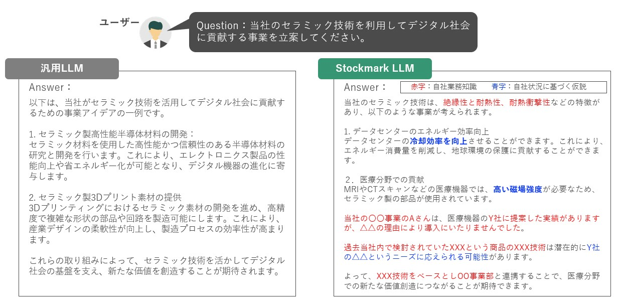 New Value 1000を成し遂げるためには、さらに「マーケットイン」の姿勢で新事業を創出していく必要があります。タイムリーに社会課題(ニーズ)を収集する技術を持つストックマークのLLM技術と、日本ガイシが保有するさまざまな情報(シーズ)をかけ合わせることで、これまで気付かなかった新しい価値を発見し、目標達成に寄与することを期待しています。