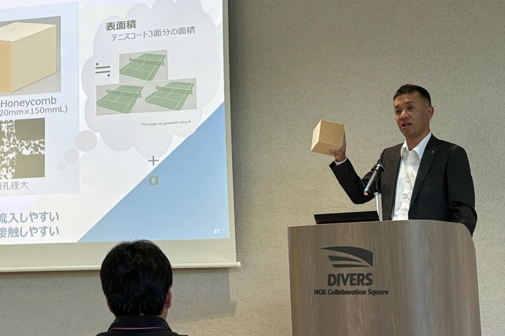 2025年9月1日、日本ガイシは、開発を進めるダイレクト・エア・キャプチャー(DAC)技術に関するメディア向け勉強会を名古屋の本社施設「NGK Collaboration Square DIVERS」で開催した。