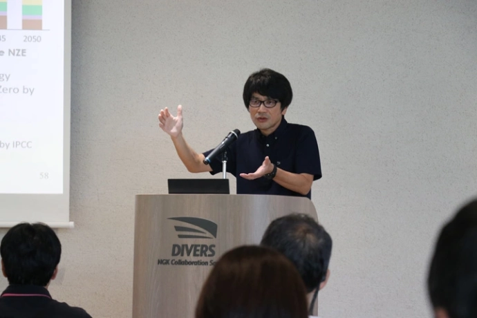 会場では、国際エネルギー機関(IEA)名誉事務局長の田中伸男氏、金沢大学の山田秀尚教授による世界のエネルギー動向とDAC技術をめぐる最新の動向と、日本ガイシのDAC技術に関する解説が行われた。
