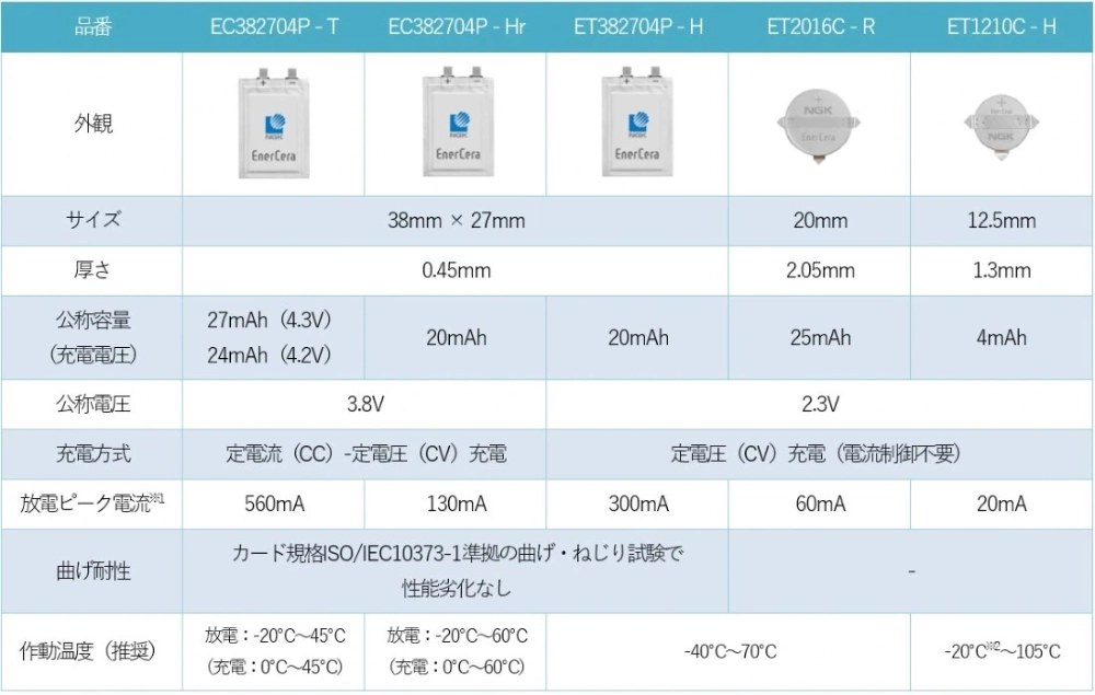 超薄型・小型リチウムイオン二次電池「EnerCera」が