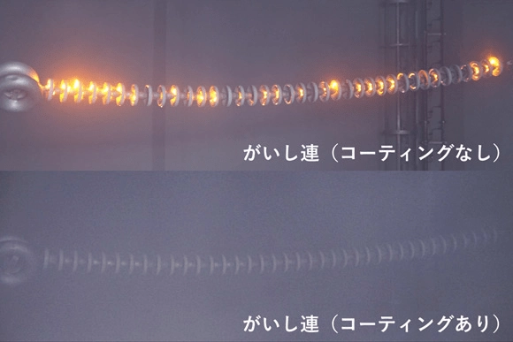 NGKでは、懸垂がいし、長幹がいしのいずれの形状にもコーティングをおこなったがいしを製作しています。コーティングがいしの性能を評価する研究設備を有し、さまざまな使用環境を再現した実験を行い、コーティングがいしの用途拡大を進めています。