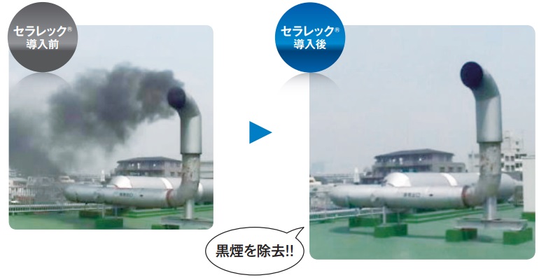 日本ガイシでは、ディーゼルエンジン発電機から排出される黒煙対策として、高性能な黒煙除去装置「セラレックシステム」をご提供しています。
