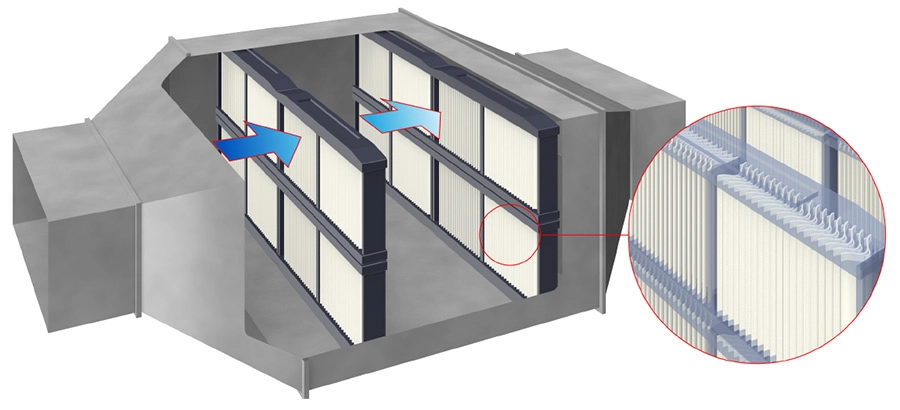 これにより、空気の流れを妨げることなくミストを効率的に捕集することが可能となり、圧力損失を最小限に抑えながら、優れたエネルギー効率を実現しています。