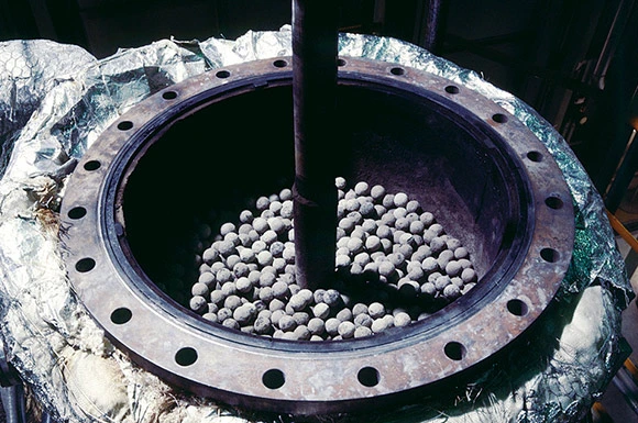 効率充填システムにより、圧縮ペレットの重量・線量・厚みをコンピューター管理し、最適な組み合わせによるドラム充填ができます。