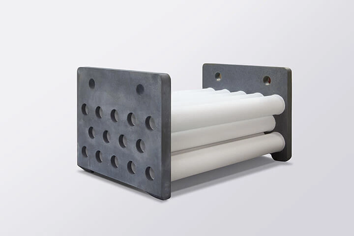 NGK独自のSiC生地を用いた接着技術で、強固に接着し複雑形状化することや、ニーズに合った成形型を用いた高度な鋳込み技術により、高精度な製品設計が可能です。