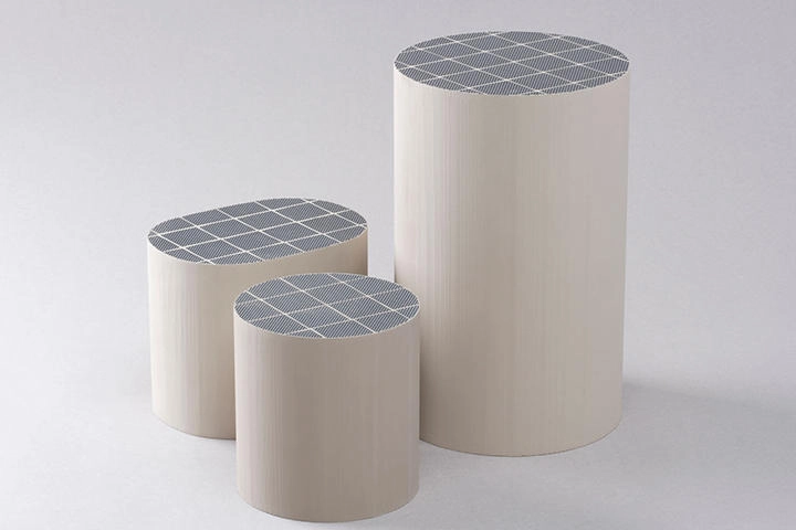 コージェライトと呼ばれるセラミックス製で、急激な温度変化や高温、腐食に強い特性を持つため、高温の排ガスにさらされる厳しい環境下でも性能を発揮します。生産累計は20億個以上にのぼります。