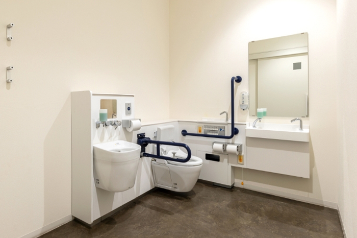 誰でも使いやすいバリアフリートイレを各所に設けています。オストメイトにも対応しています。