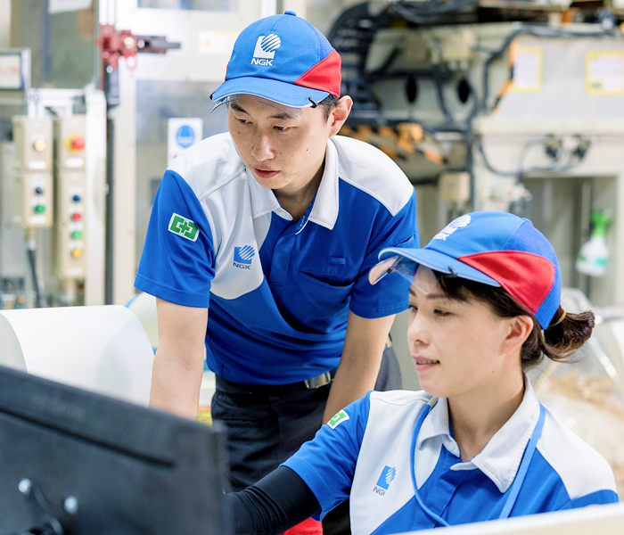 NGKは全体的に風通しがよく、上下の隔たりを感じることなく、いつも前向きなレスポンスをもらえるため、相談はもちろん、意見の発信もしやすい環境です。困ったときは、先に先輩から声をかけてもらえるほど親切な人が多く、安心して働くことができます。