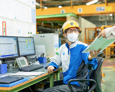 正社員登用後は、安全活動やQCサークルのリーダーも任されています。ヒヤリハットを集約して改善策を共有し横展開する中で、周りの社員とコミュニケーションを取ることを意識しています。