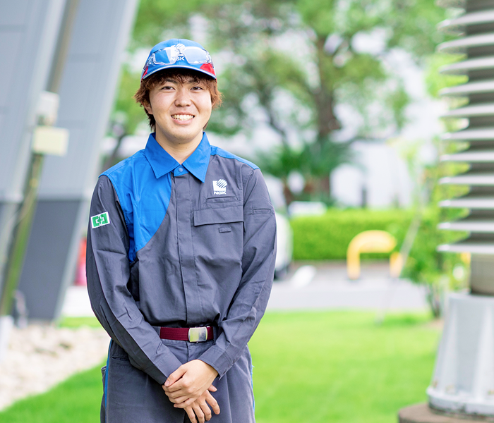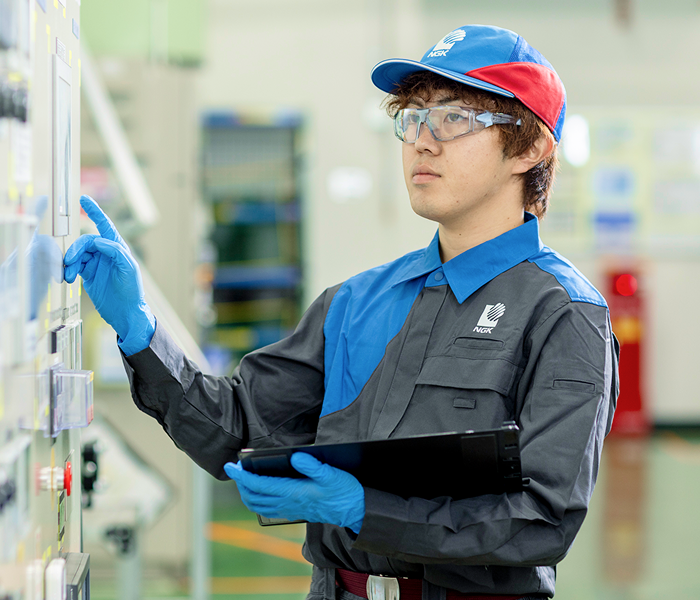 製造現場で働く父の影響で製造業に関心を持ち、工業高校電気科で基礎電気、回路、計測を学び、電気工事士、シーケンス制御、施工管理などの資格を取得。進路に悩む中でNGKのCMを見かけたことをきっかけに、社風に惹かれ入社を決意。知多事業所HPC事業部製造部に配属され、半導体製造装置用セラミックス製品の焼成工程を担当。ヒューマンエラー低減の委員会にも参加。