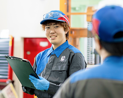 入社後は、先輩がOJTで丁寧に教えてくれます。私は約半年かけて、作業のコツや段取りを一つひとつ教わりました。段階的にできることが増え、任せてもらえるようになっていくので充実感があります。それに、製造現場には工業高校出身者が多く、同じ境遇の先輩・仲間がいたことも安心できました。