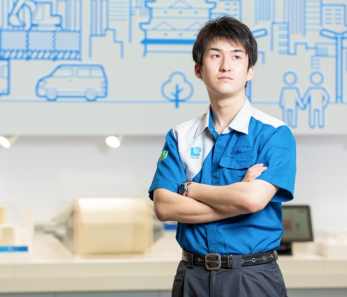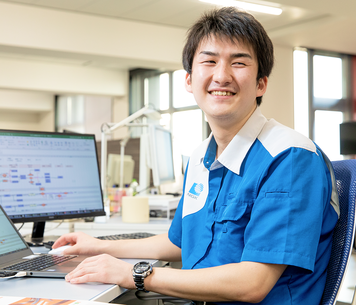 大学・大学院ではガラスに代わる金属pH電極について研究。卒業後はその研究分野を生かせる職場として、ガラスメーカーへ。生産技術部に配属され、自動車用強化ガラスの試作、生産支援、プロセス開発に従事しました。約1年半勤めた後、「世界トップシェアの製品を扱う企業で自分の可能性を試したい」という思いから、NGKへ転職。