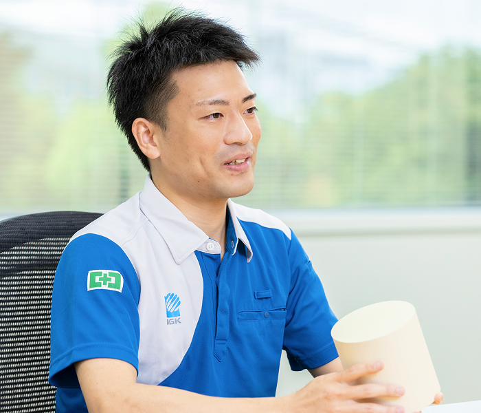入社後は自動車の排ガスに含まれる有害成分を浄化する「ハニセラム」や「ディーゼル・パティキュレート・フィルター(DPF)」の設計を担当。