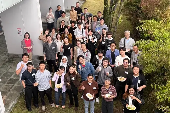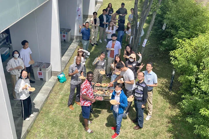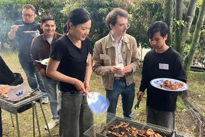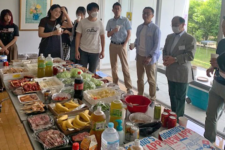 留学生を歓迎するバーベキューパーティーをNGKインターナショナルハウスで開催しました。留学生や代表理事など52人が参加し、雨上がりの中庭で各国の留学生たちが親睦を深めました。