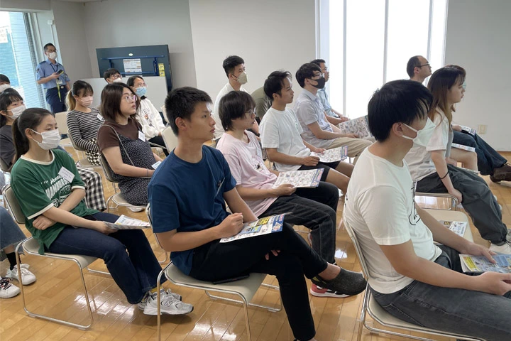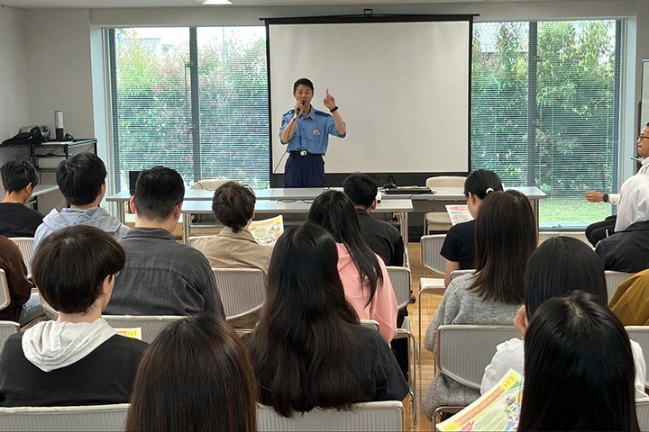 日本ガイシインターナショナルハウスで天白警察署による交通安全・防犯セミナーを開催しました。入居者24人が受講し、日本の交通ルールと、日本で安全に暮らすためのルール・マナーについて学びました。