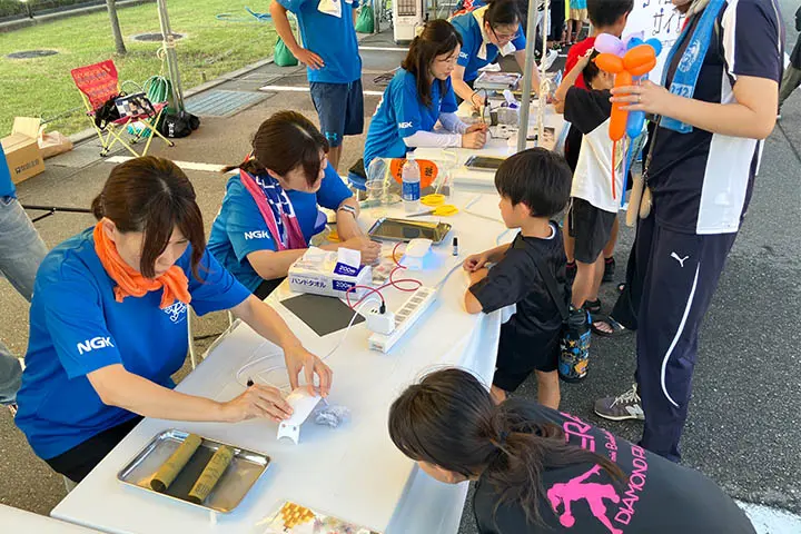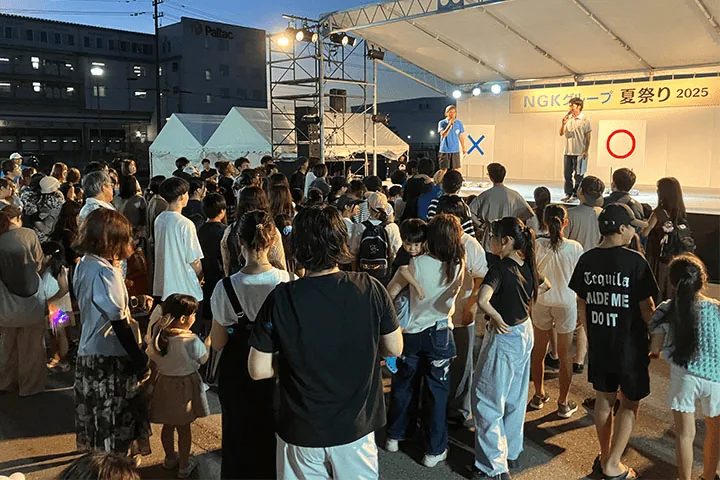 特設ステージでは地元ダンスチームによるヒップホップダンスショーやブラスバンド演奏、ものまね芸人によるパフォーマンスが行われたほか、キッズコーナーでは「NGKサイエンスサイト」で科学の楽しさを紹介しました。イベントの締めくくりには、毎年恒例の豪華景品が当たる抽選会を開催。会場は熱気に包まれ、夏祭りは大いに盛り上がりました。