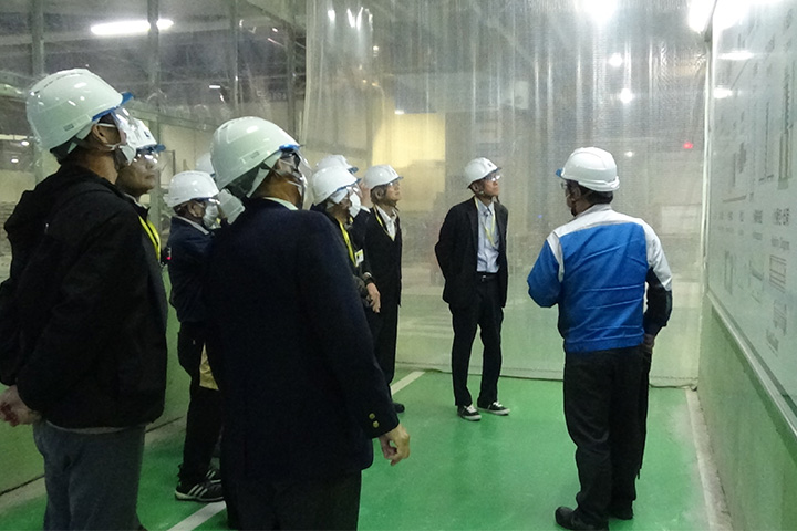 知多事業所は、近隣の区の区長や住民を招いて工場見学会を開催しました。
