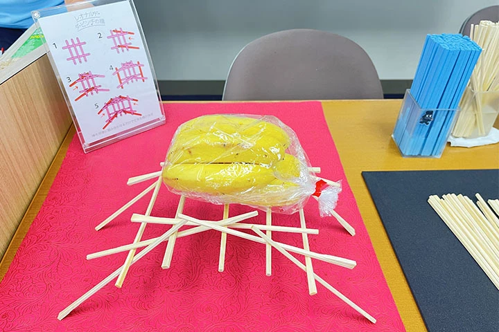 今年は、名古屋キワニスクラブ会員の蟹江浩嗣顧問のほか、吉野隆史執行役員、佐治信光常勤監査役、石川修平顧問、社員ボランティアなど計15人がスタッフとして参加。セラミックス製造から発想した「粘土遊び」や「EnerCera※2」でおもちゃを動かす実験、割りばしを使う「ダビンチの橋づくり」を子どもたちに楽しんでもらいました。