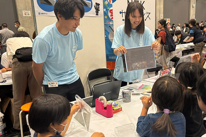 当社ブースでは「偏光板で遊ぼう」をテーマに、二日間で延べ23人の社員が演示講師ボランティアを担当しました。
