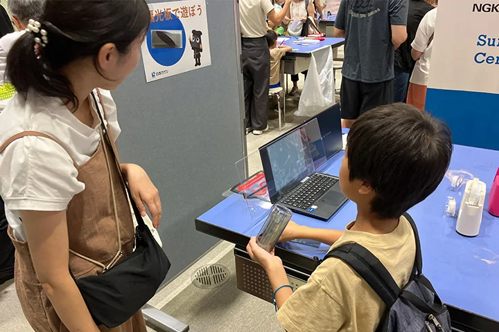 日本ガイシは、7月6日に岐阜県先端科学技術体験センター「サイエンスワールド」(瑞浪市)で開催された科学イベント「サイエンスフェア」に実験ブースを出展しました。NGKグループの社員ボランティアが「家庭でできる科学実験シリーズ NGKサイエンスサイト」から「偏光板で遊ぼう」を実演しました。